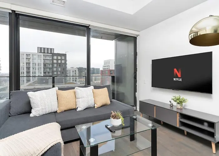 This spacious Stylish Retreat 1Br Condo W Patio Chic Downtown lies next to Queen Street West.